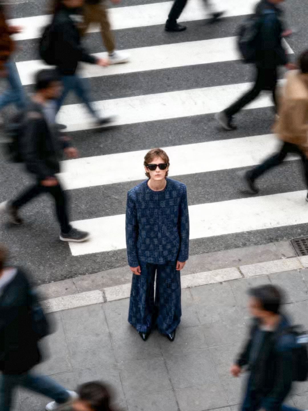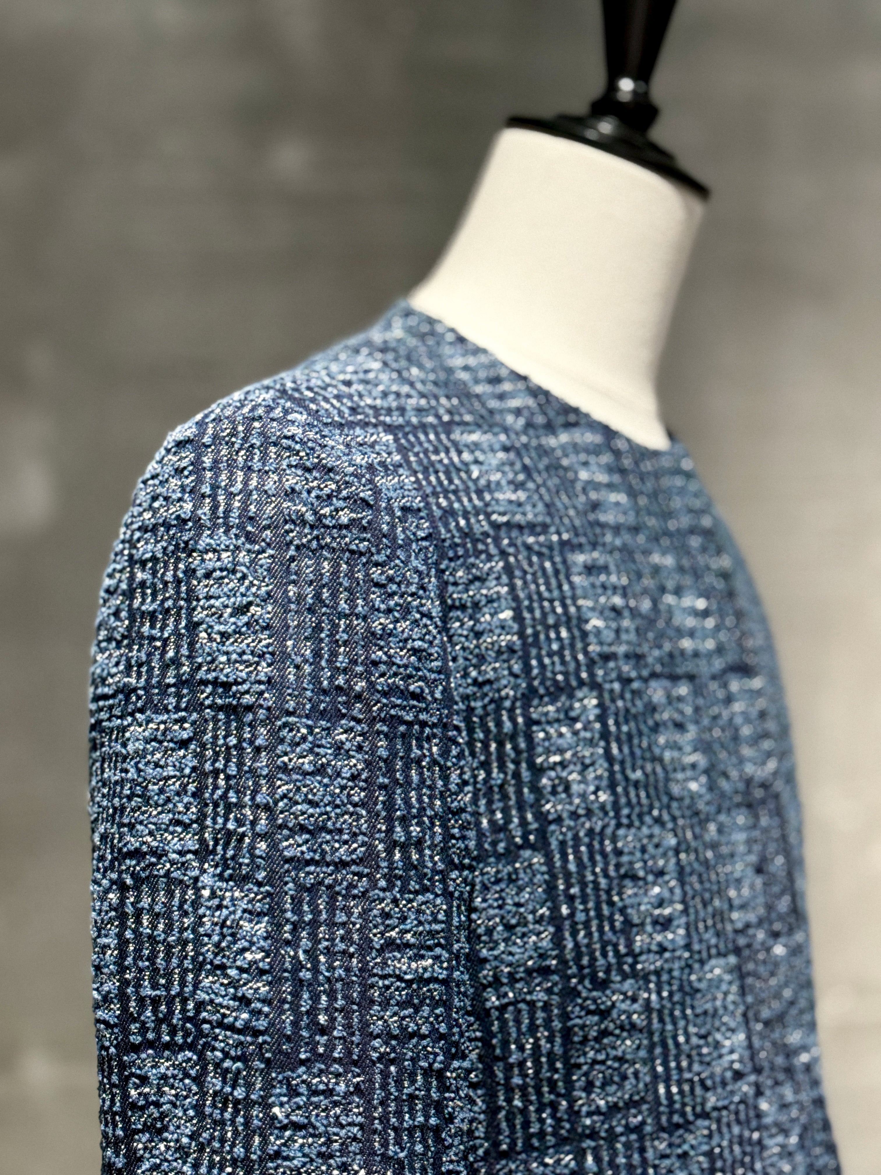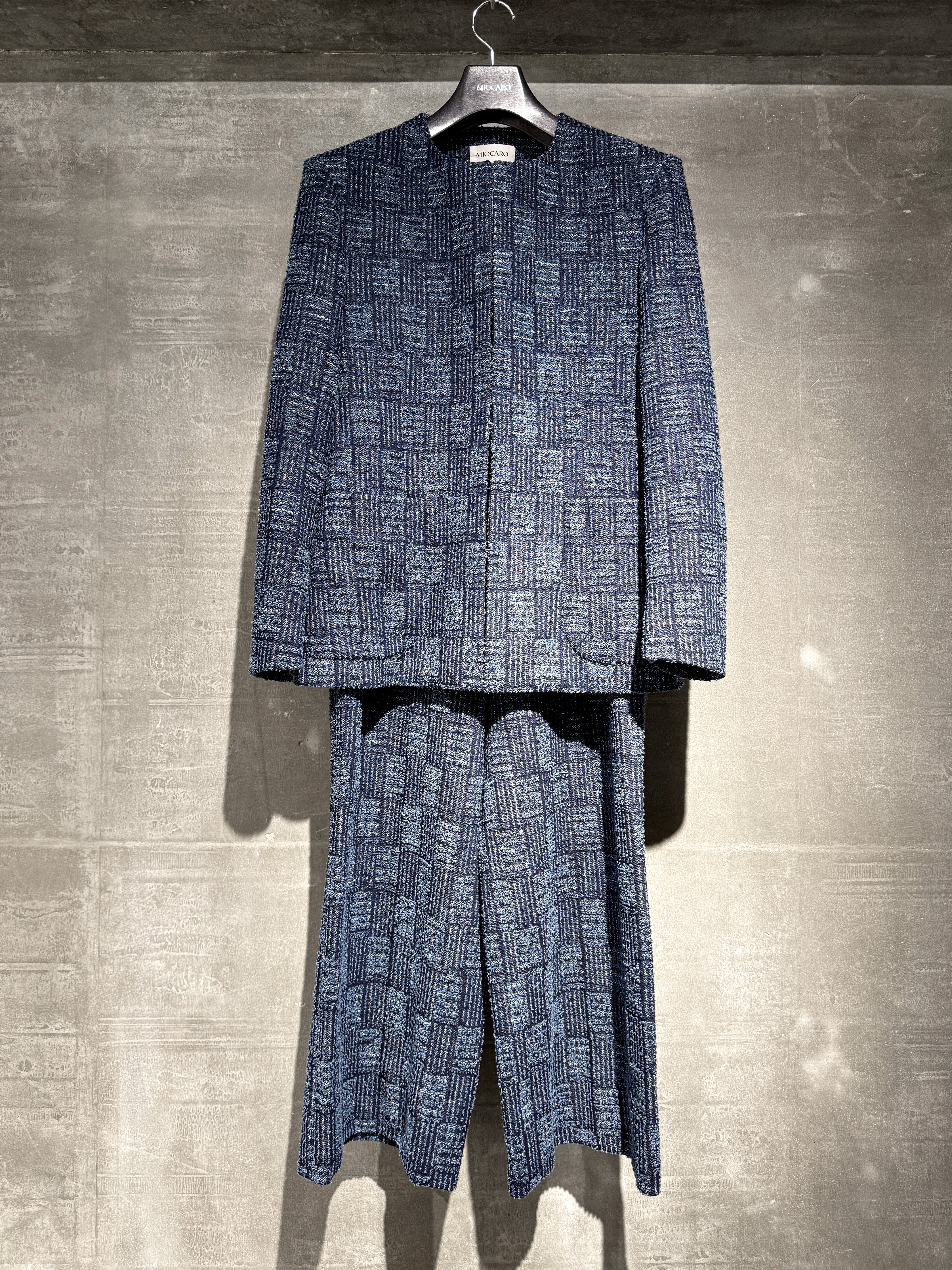 日本国内でのみ加工可能な「ワラカット」という刺繍技法で、市松模様を浮き立たせたデニムを使用して仕立てております。